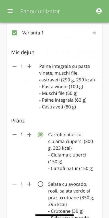 - Lista total de ingrediente/zi sau zile